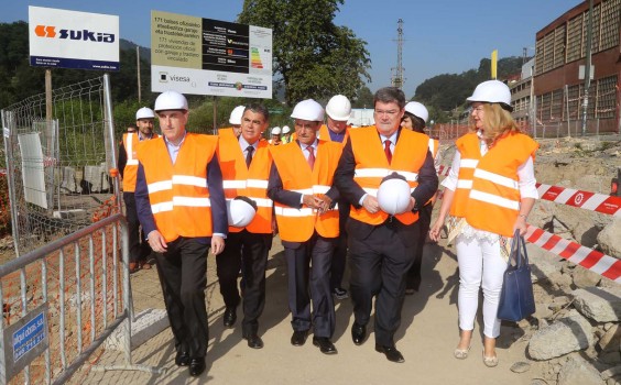 El Consejero de Empleo y Políticas Sociales de Gobierno Vasco, Ángel Toña y el alcalde de Bilbao, Juan María Aburto, acompañados por la Viceconsejera de Vivienda, Covadonga Solaguren y el Director General de Visesa, Marcos Muro, han acudido al barrio bilbaino de Bolueta para ser testigos del comienzo de los trabajos de edificación de dos bloques adosados que albergarán 108 VPO y 63 viviendas de alquiler social.