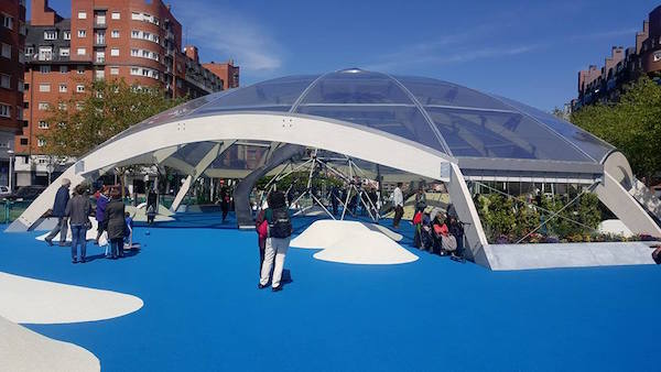 La instalación, que ha supuesto un desembolso de 738.000 euros, consiste en una estructura de madera laminada que soporta la lona que cubre los nuevos juegos. La cubierta es transparente para dejar paso a la luz natural, tiene forma semiesférica y una superficie de casi 800 metros cuadrados. En la parte central la cubierta dispone de un aro con led y también cuenta con un sistema de reciclaje de agua para riego.