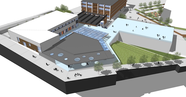 Junto a la nueva pista cubierta, un ascensor exterior y las escaleras formarán un núcleo de comunicación que salvará el desnivel existente entre la zona del nuevo edificio y el nivel en el que se encuentra el actual edificio. Los trabajos tienen un prespuesto de 6.998.720 euros y un plazo de ejecución de 22 meses, una vez iniciadas las obras.