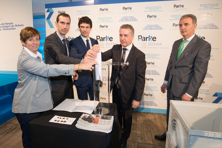 El lehendakari Iñigo Urkullu ha colocado la primera piedra del Parque Científico y Tecnológico de Bizkaia en Ezkerraldea-Meatzaldea.