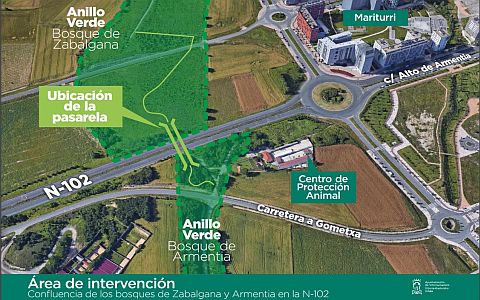 El Ayuntamiento de Vitoria ha licitado las obras para el suministro y la instalación de una pasarela peatonal sobre la carretera N-102 que unirá el barrio de Zabalgana con el bosque de Armentia.