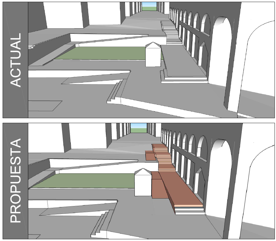 Actualmente, desde la parada de autobús existente en la zona, hay una rampa de dos tramos que desembarca en la zona alta de la plaza. Sin embargo, esta rampa no proporciona acceso a los comercios existentes en los bajos del edificio. Asimismo, para acceder a los distintos niveles de comercios, existen varios tramos de escaleras, irregulares en dimensiones, “algo que con estas obras quedará solventado mediante una serie de rampas que tendrán una pendiente del 8%”.