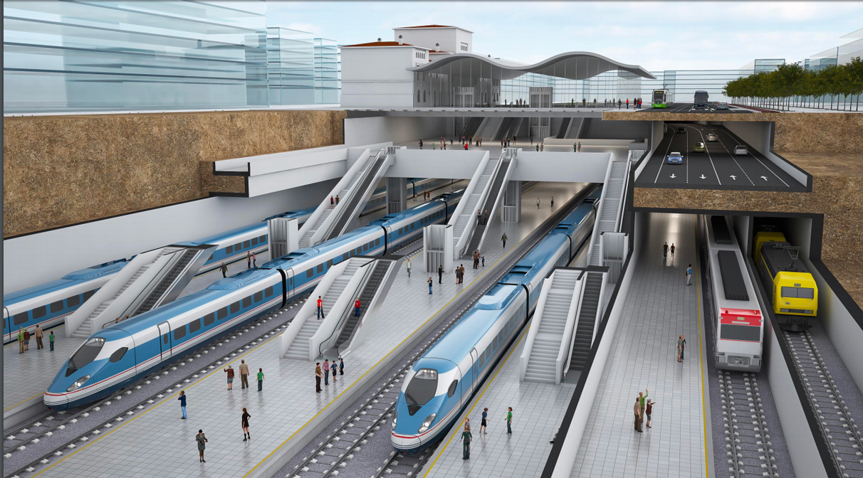 En el nivel menos dos se situarán tres andenes y cinco vías de ancho estándar para alta velocidad, así como otro andén más con una vía para cercanías.