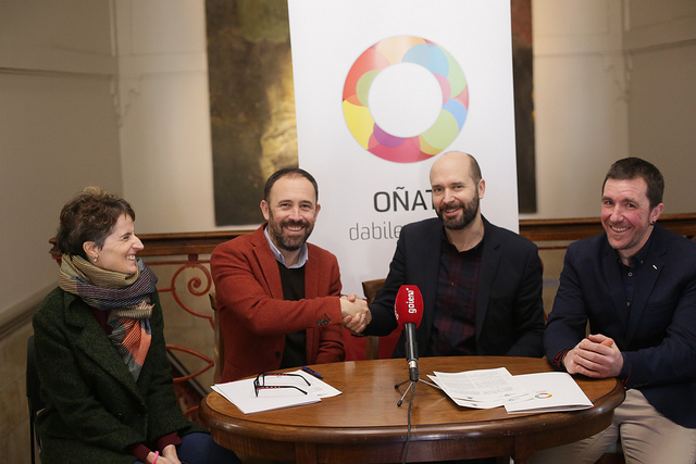 El alcalde de Oñati, Mikel Biain y el Diputado de Cultura y Deportes Denis Itxaso han suscrito un convenio para colaborar en la ampliación y reforma del polideportivo Zubikoa. El coste de ejecución material es de 5.823.954 euros y la Diputación aportará 453.920 euros.